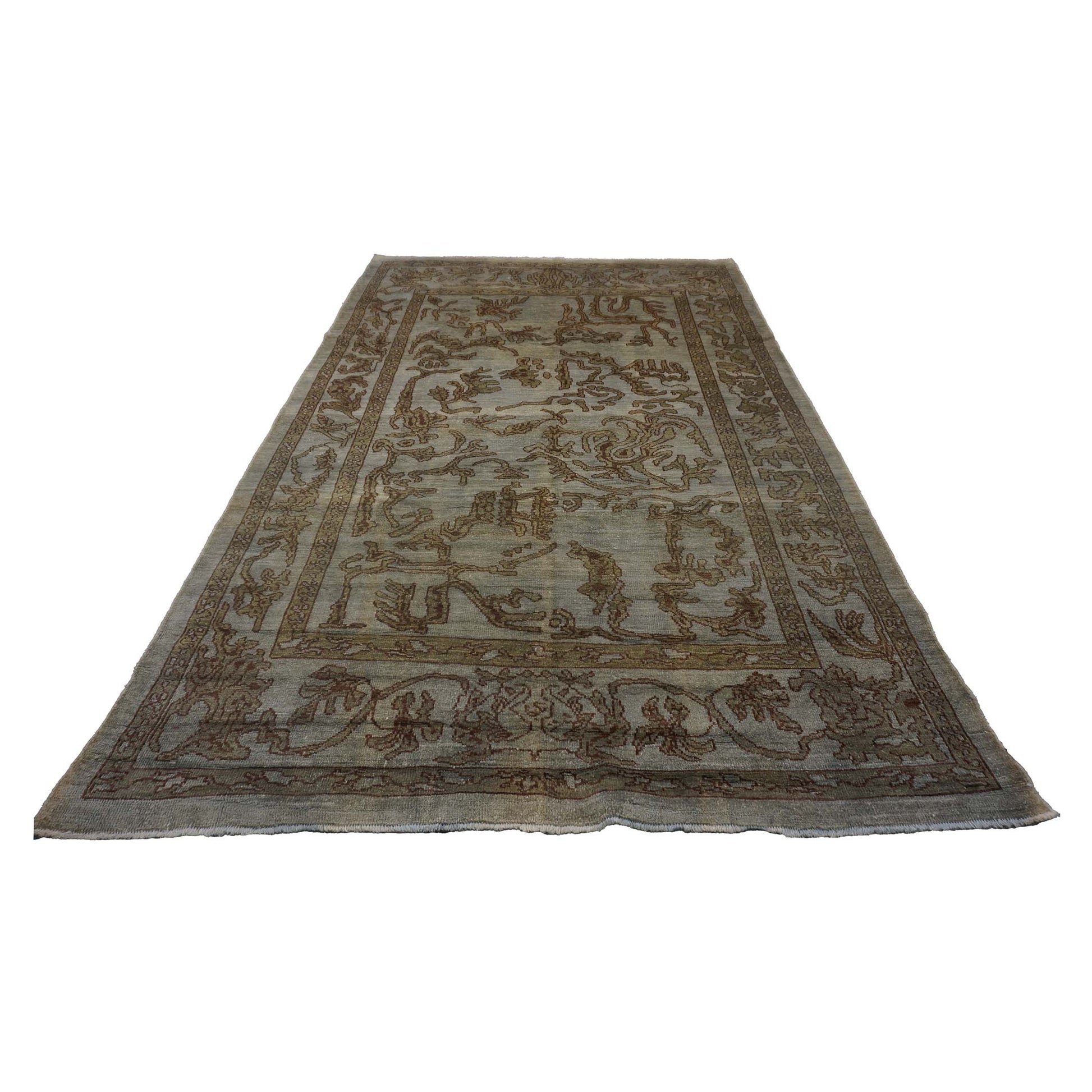 Vintage Persian Sultanabad Recreation Wool 6x9 Grey, Tan & Brown Handmade Area Rug #1140004
