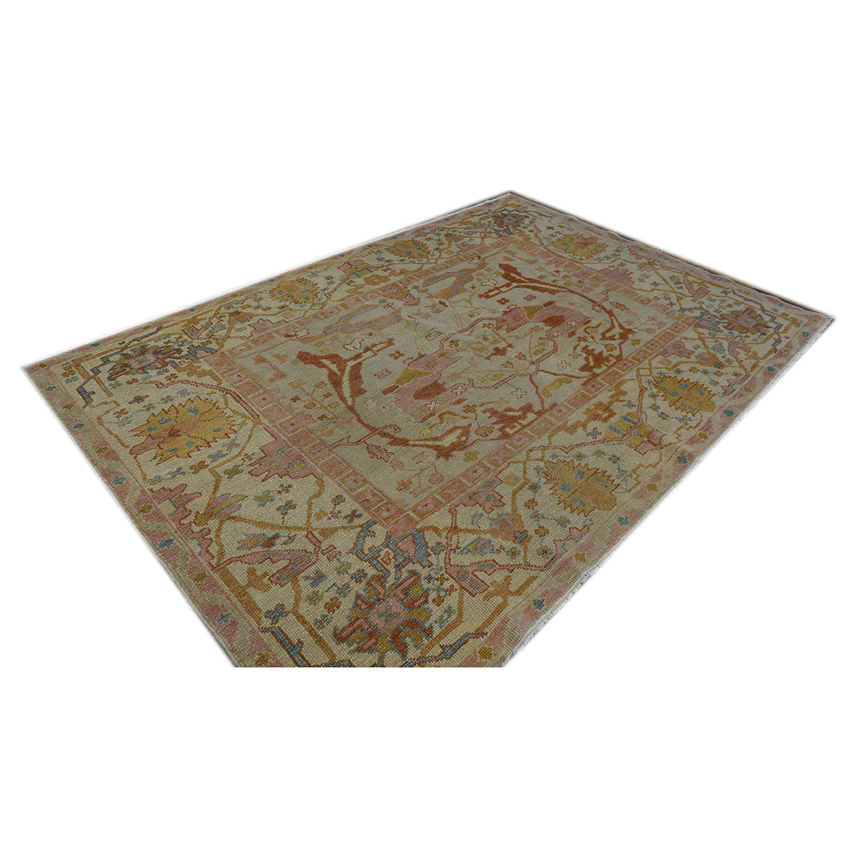 Persian Sultanabad Wool 5x7 Tan, Light Blue, Pink & Orange Handmade Area Rug #1141234