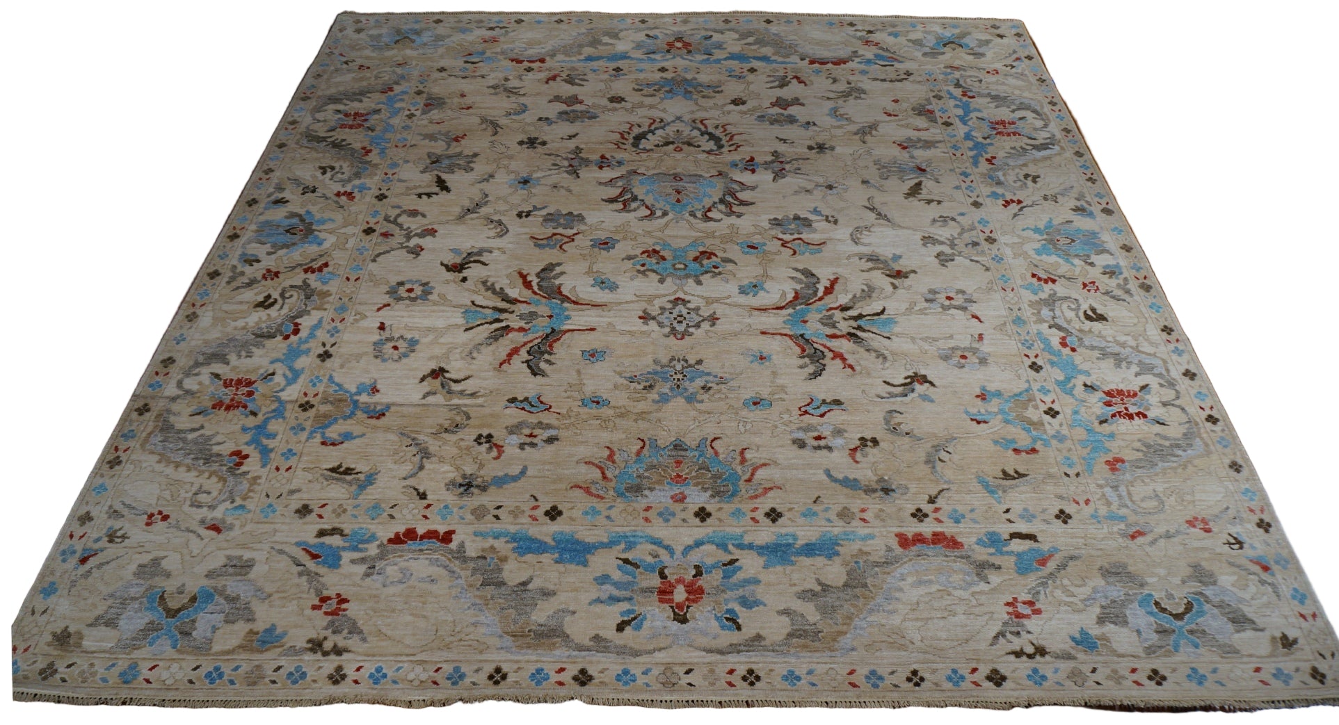 Indian Sultanabad Bamboo & Silk 10 x 10 Light Blue, Ivory , Gray & Red Handmade Square Area Rug 1143480
