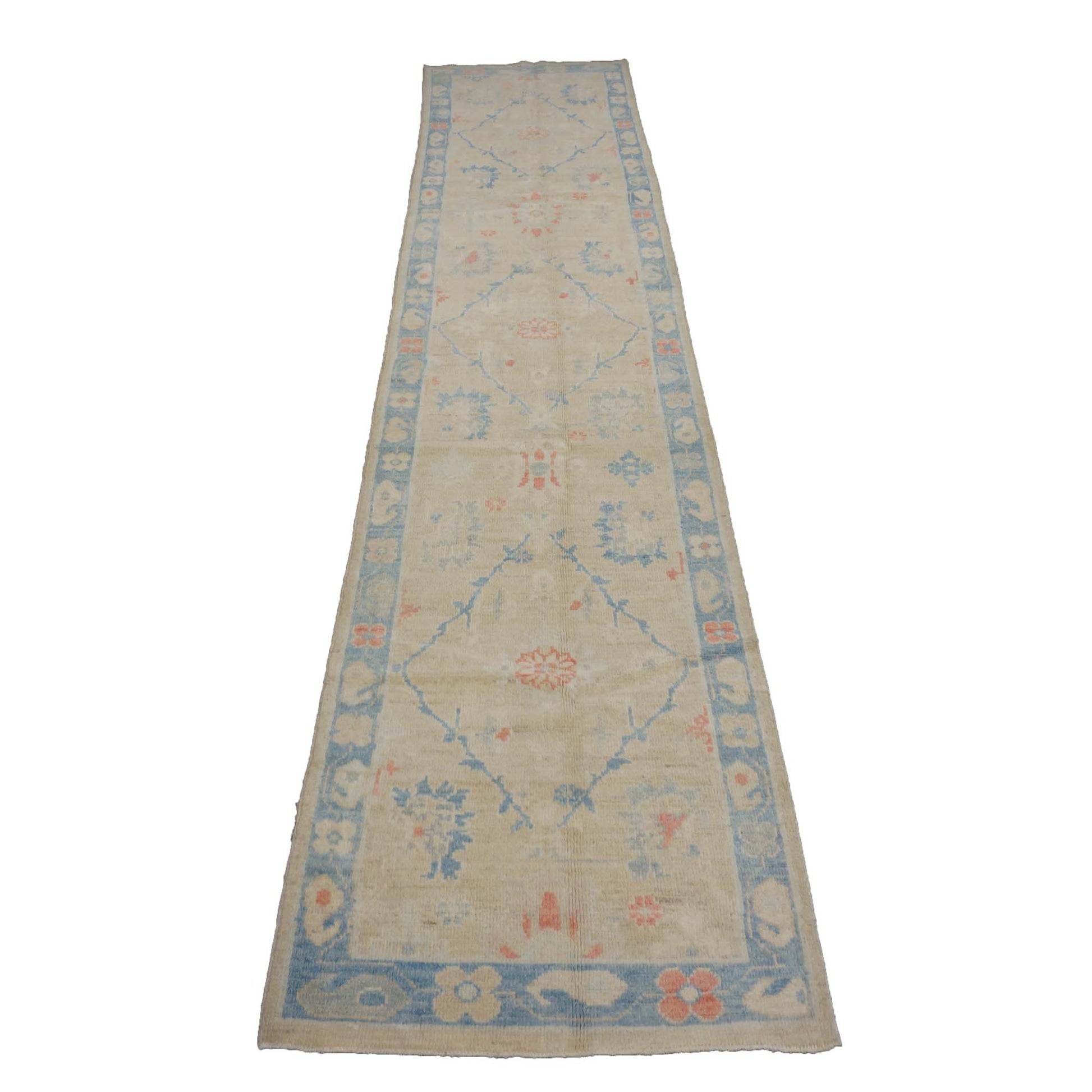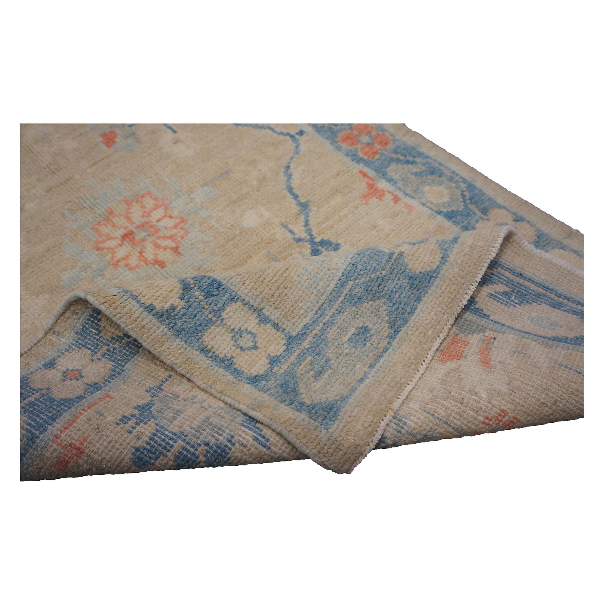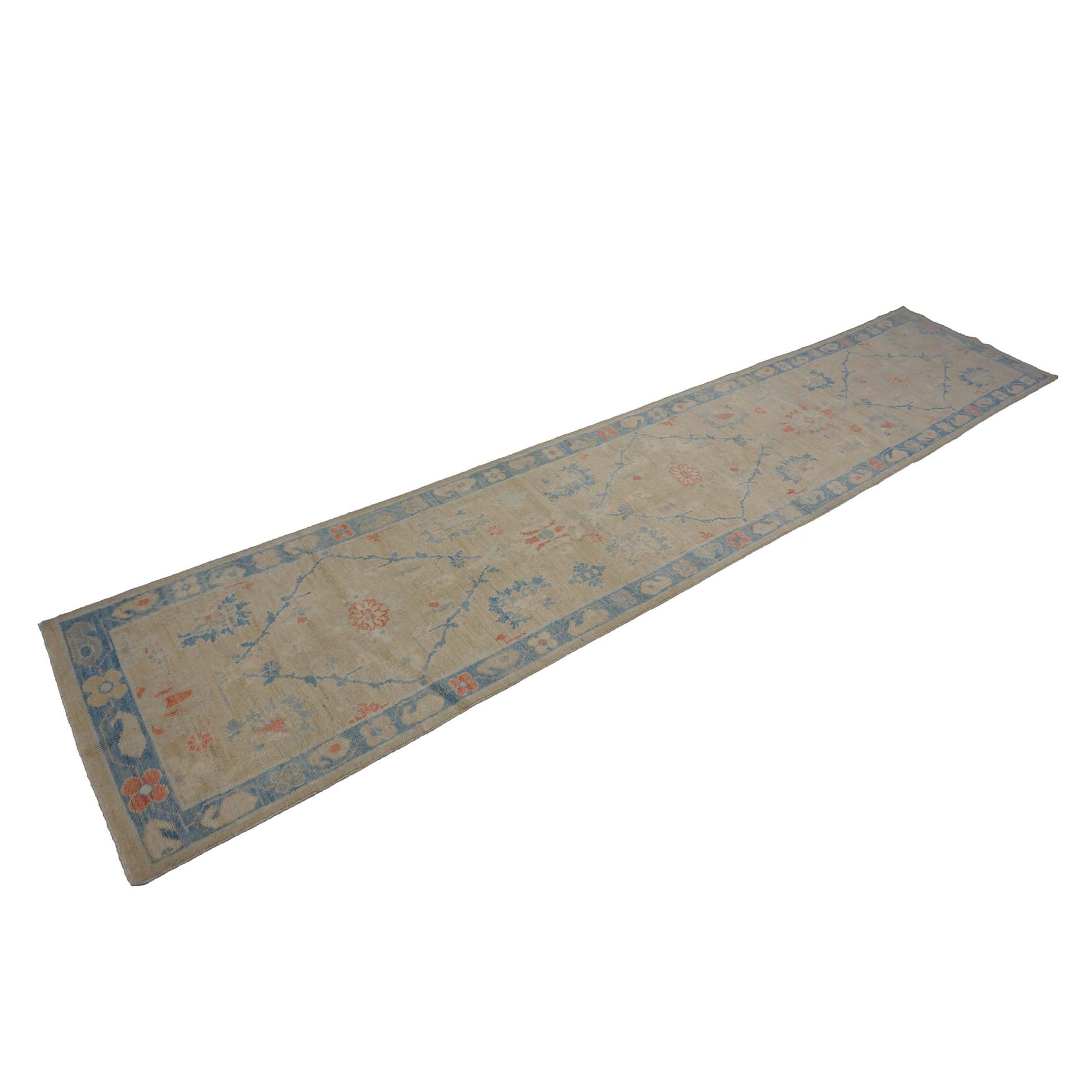 Turkish Sultanabad Wool 3x13 Tan, Blue & Red Handmade Runner Rug #1144166