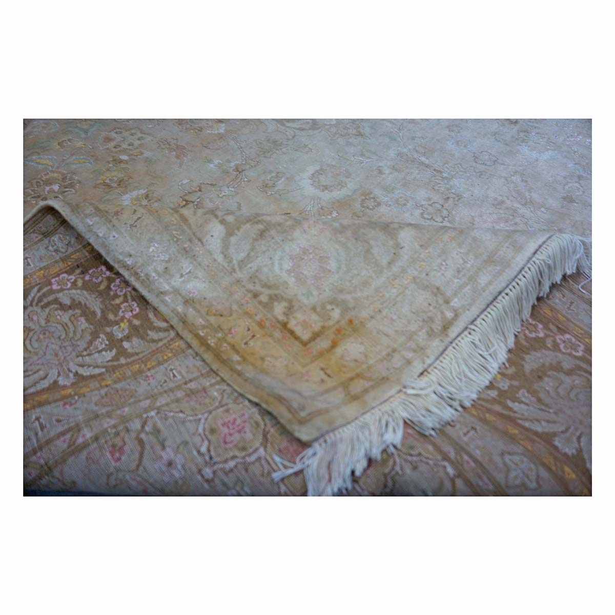 Vintage Persian Tabriz Wool & Silk 7X10 Tan, Gold, Ivory & Pink Antique Washed Handmade Area Rug #1140921